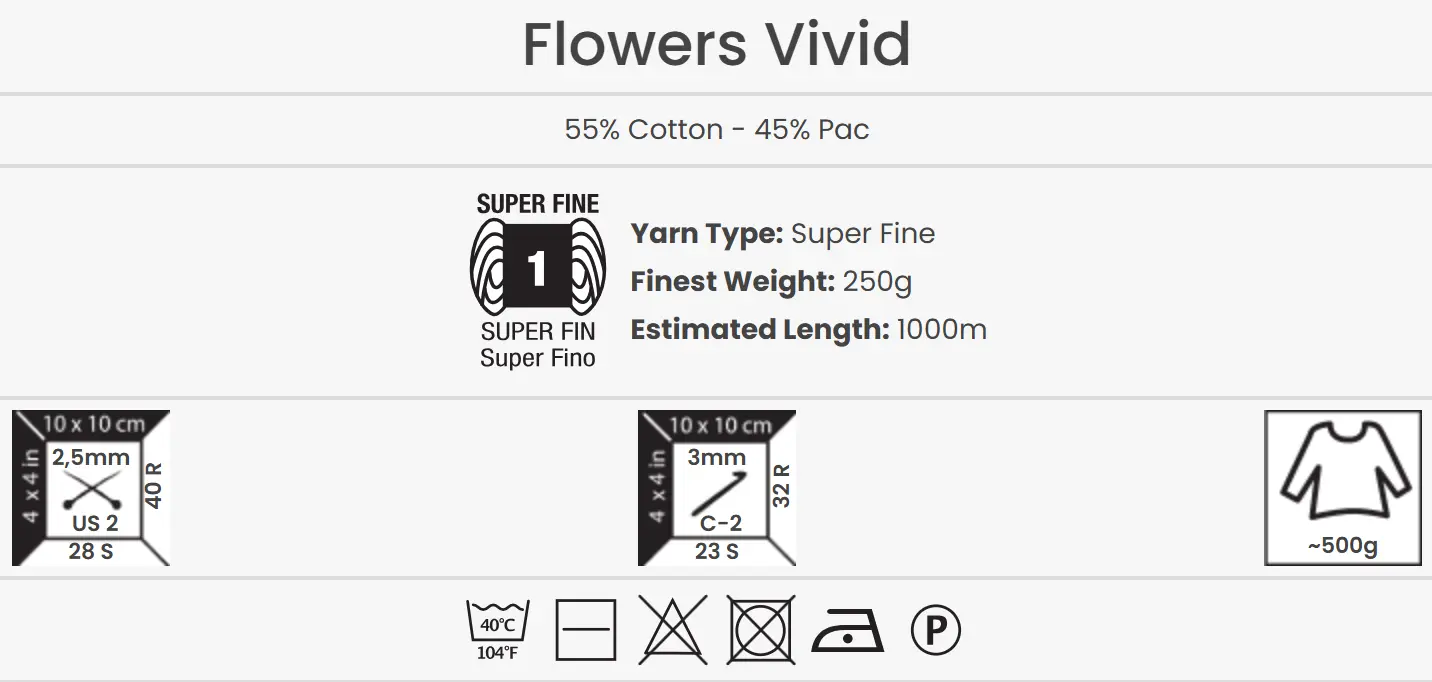| YarnArt Flowers Vivid | 501, 502, 503, 504, 505, 506, 507, 508, 509, 510, 511, 512 |