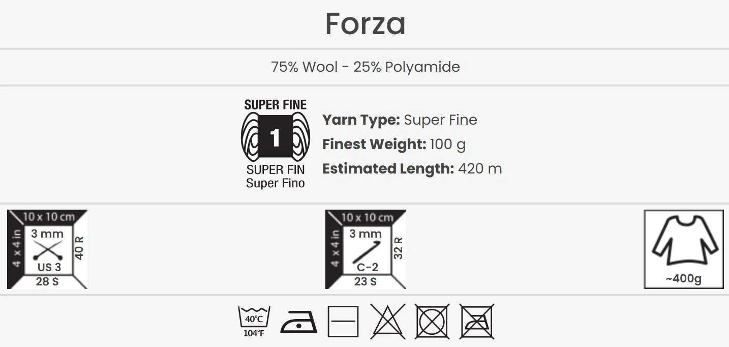 Mit YarnArt Forza schaffen Sie Projekte, die nicht nur schön, sondern auch unglaublich widerstandsfähig sind. Der Name, der „Kraft“ bedeutet, steht für die herausragende Haltbarkeit dieses Garns. Die Mischung aus 75 % Wolle und 25 % Polyamid verbindet die natürliche Wärme und den Komfort der Wolle mit der außergewöhnlichen Strapazierfähigkeit von Polyamid.